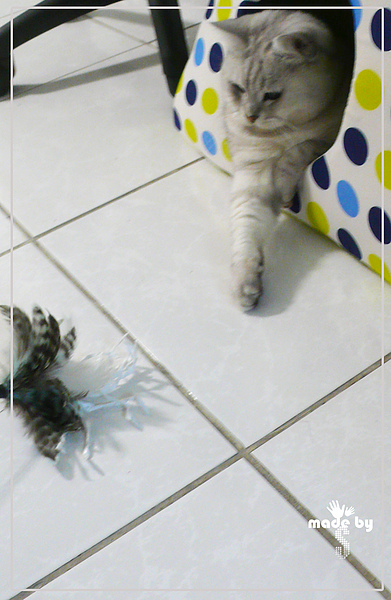 眼睛非常閃亮的弟弟很期待有人可以拿起逗貓棒和他玩耍 (兩隻手兒好乖巧)